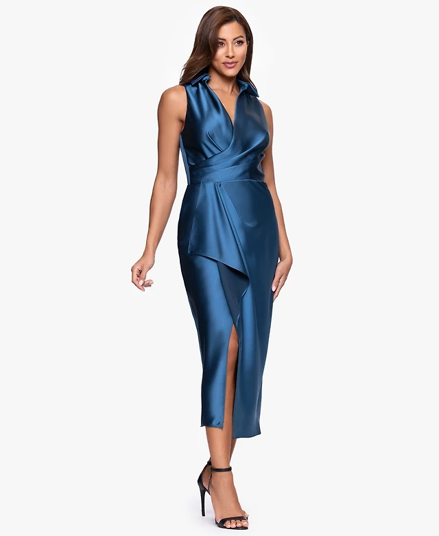 Nocturne Women's Tie Neck Asymmetrical Midi Dress