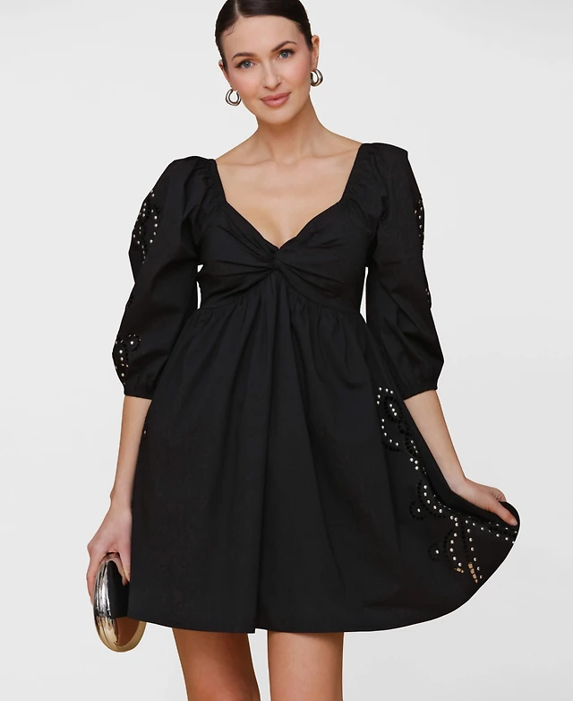 Modenaire Women's Short-Sleeve Embroidered Scalloped Shirt Dress