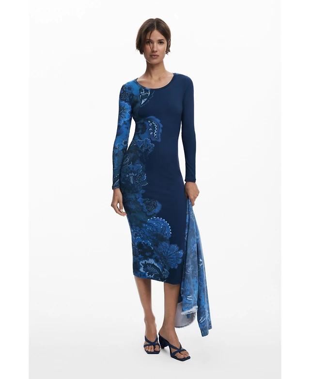 Row A Women's Burnout Long Sleeves Maxi Dress