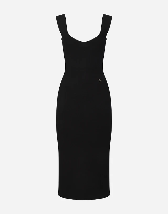 ASYMMETRIC KNIT MIDI DRESS WITH APPLIQUÉ