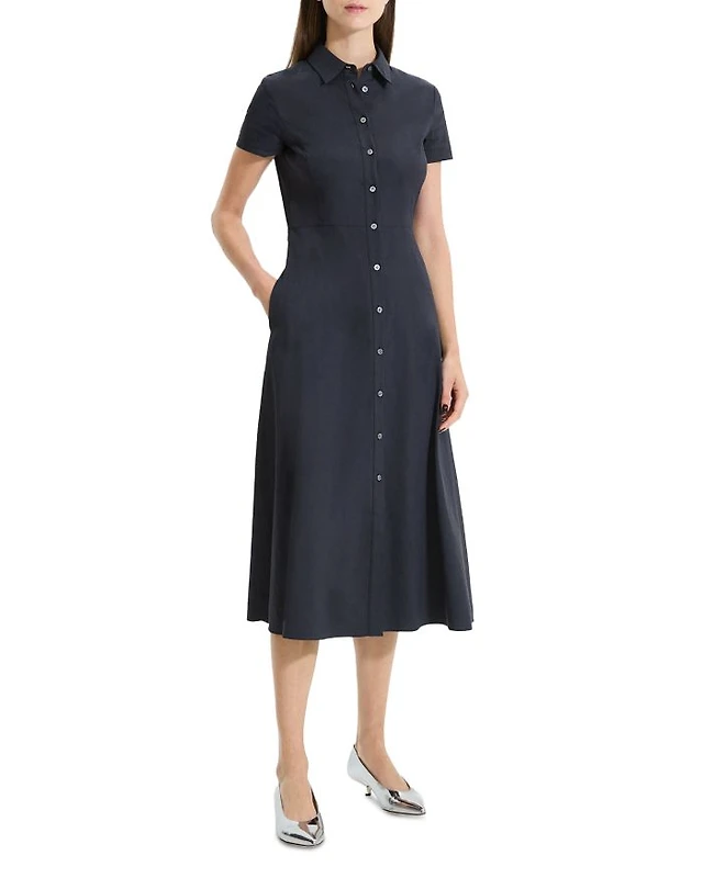 La Moda Clothing Women's Midi Summer Dress with Collared Neck, Short Sleeves