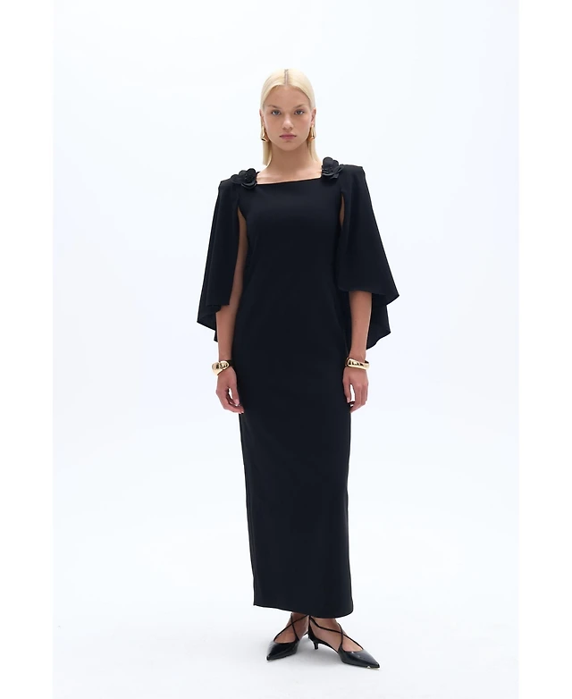Lara Women's Beaded Midi Dress with Cap Sleeves