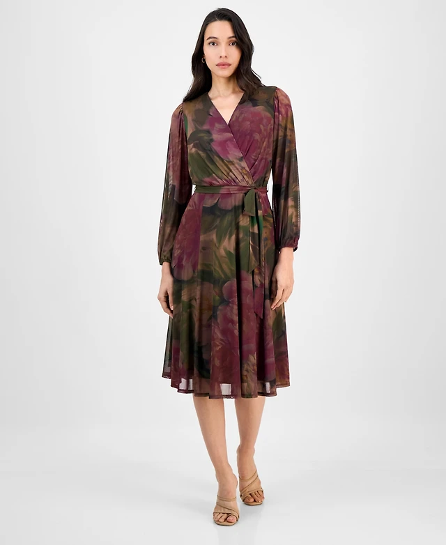 Jones New York Petite Printed 3/4-Sleeve A-Line Dress