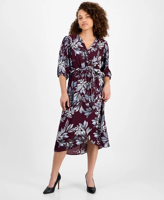 Pinkblush Maternity Ivory Watercolor Floral Hi-Low Wrap Dress