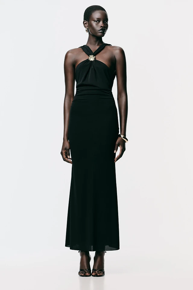 Quiz Women's Ity Wrap Maxi Dress with Gold Bar Trim