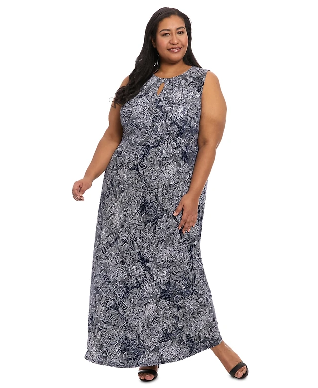 Msk Plus Size Printed Split-Neck Sleeveless Maxi Dress
