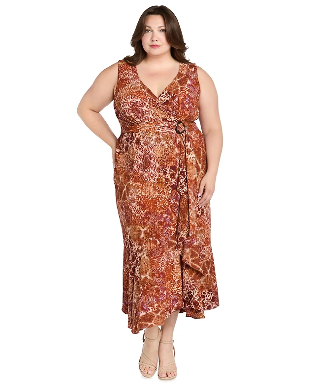 R&M Richards Short-Sleeve Faux-Wrap Dress