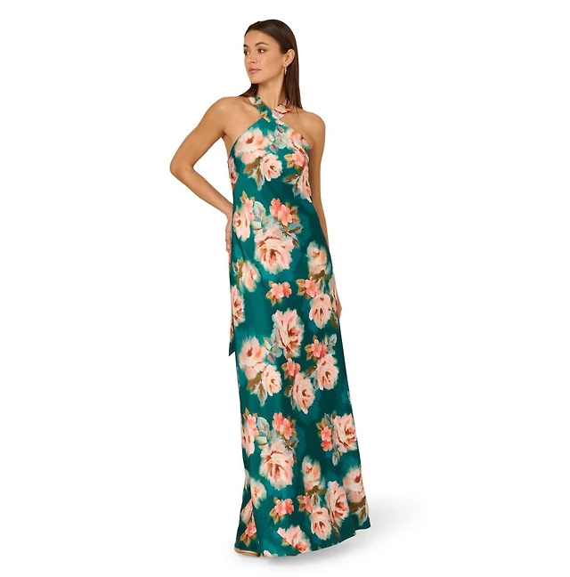 Adrianna Papell Women's Halter Neck Sleeveless Gown