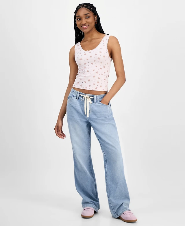 Celebrity Pink Juniors' Double-Button Distressed Bootcut Jeans