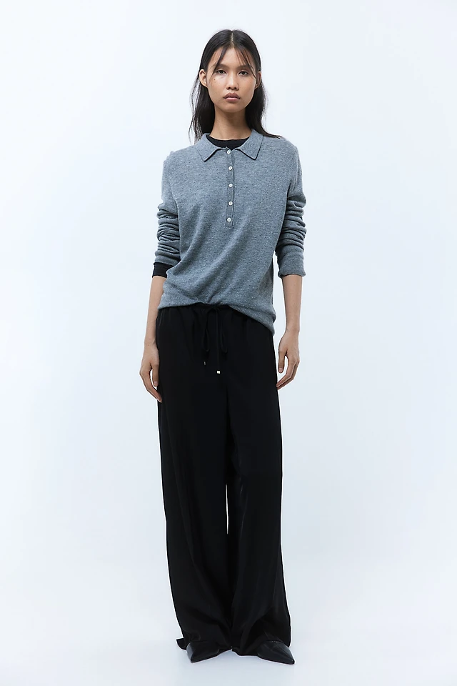 Mid-Rise Wide-Leg Flannel Drawstring Pant