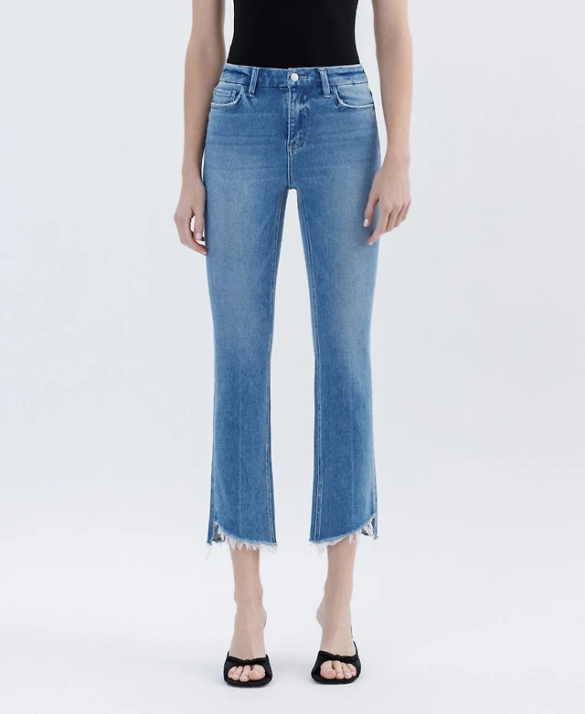 Flying Monkey Women's High Rise Cropped Step Hem Slim Straight Jeans