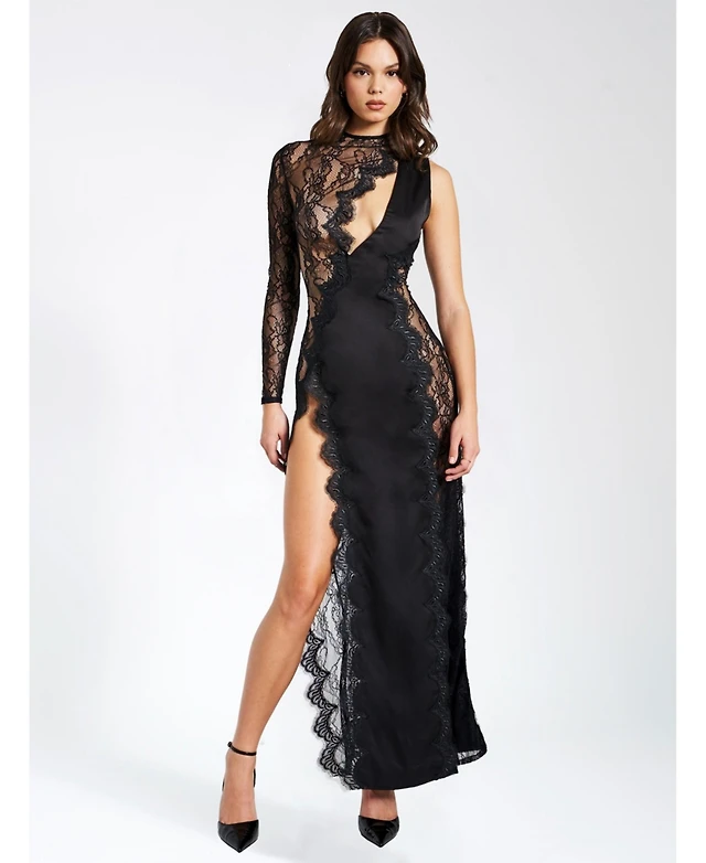 Miss Circle Women's Weslyn Black Satin Lace High Slit Dress