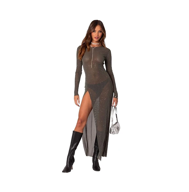 Ribbed Knit Boat Neck Long Sleeve Maxi Sheath Dress