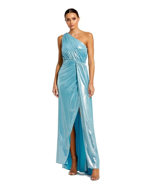 Mac Duggal Women's Gathered One Shoulder Satin Faux Wrap Gown