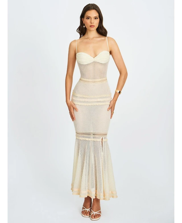 Miss Circle Women's Adelaide White Beaded Sequin Net Bodycon Gown
