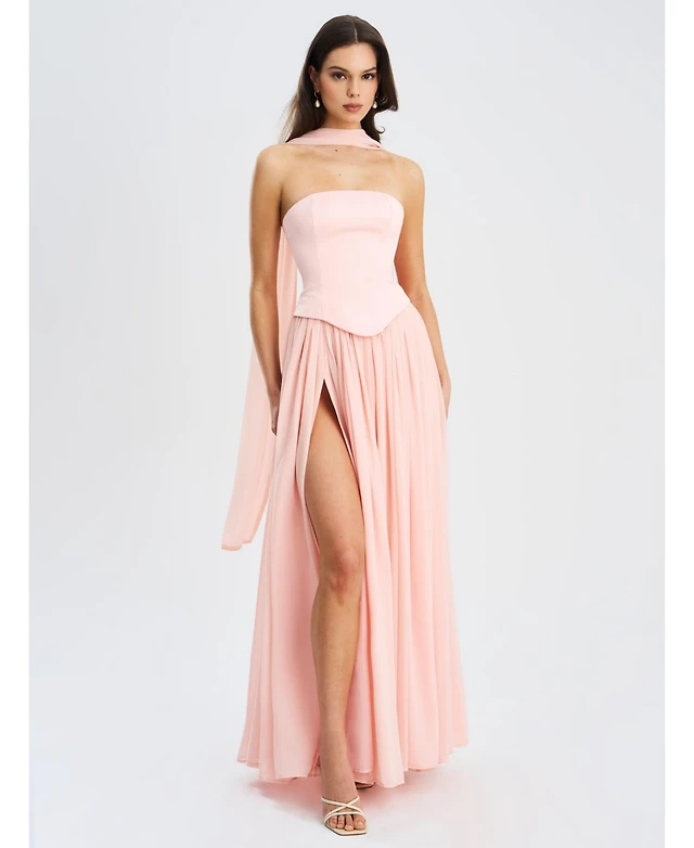 Miss Circle Women's Udana Butter Yellow Drop Waist Tulip Gown