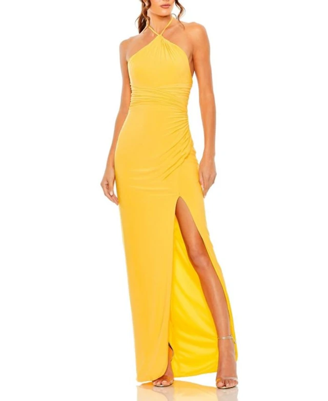 Mac Duggal Women's Ieena Plunge Neck High Slit Gown