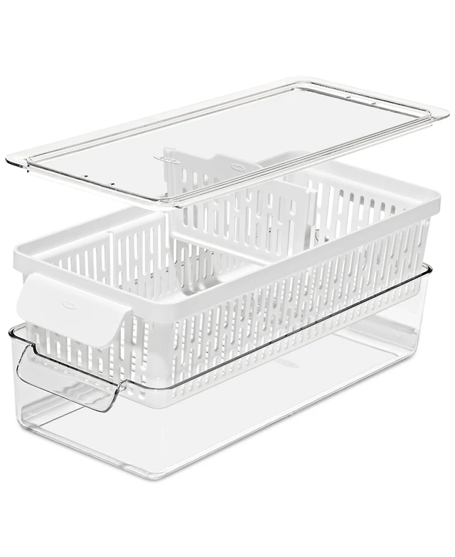 iDesign Stackable Open-Front Bins with Lid, Set of 3, Clear/White