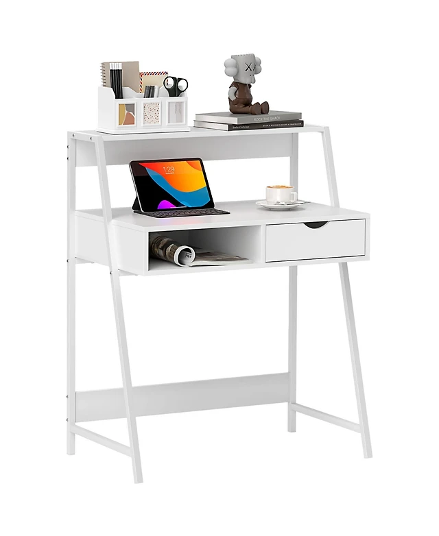 Homcom Computer Writing Desk for Small Space w/ Drawer, Storage Shelves,