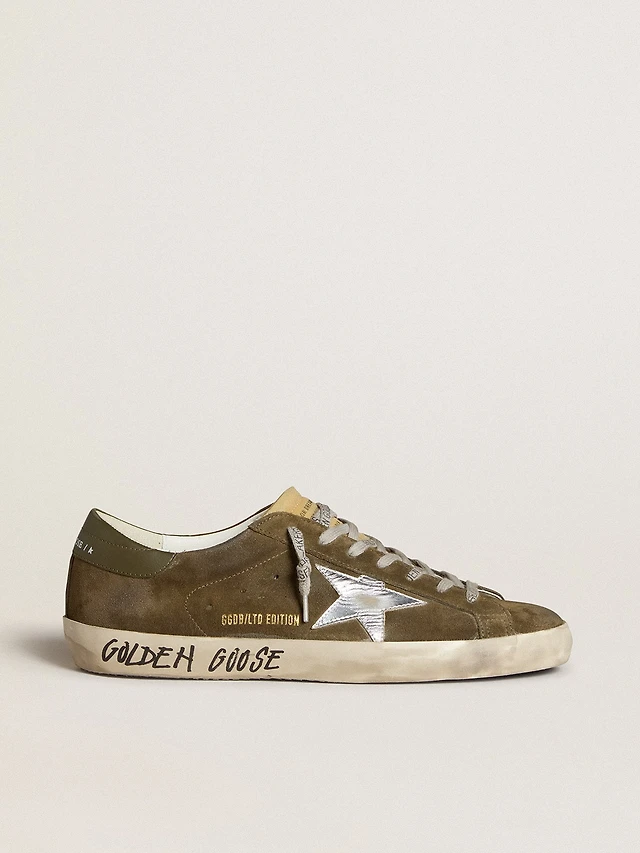 Men’s Super-Star LTD white suede and mesh with green leather star silver heel tab