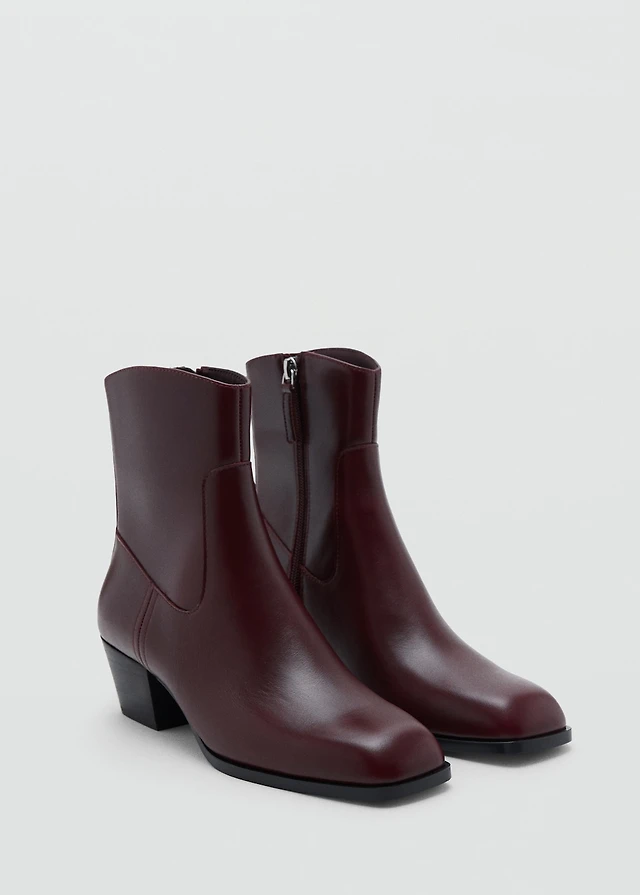 LEATHER TOPSTITCHED COWBOY ANKLE BOOTS