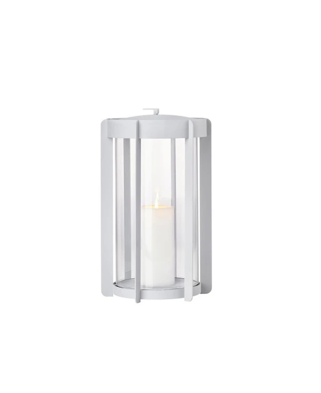 Lumabase White Wooden Lantern with Chrome Roof and Led Candle