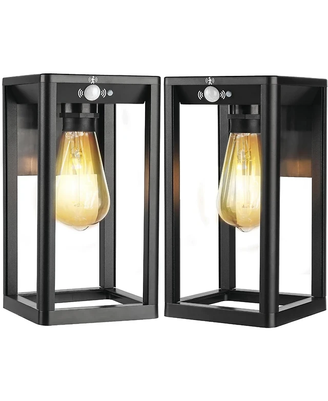 Glitzhome 23.75" H, 17.75" H Set of 2 Metal Stripes Geometric Solar Powered Edison Bulb Outdoor Floor Lantern or Planter Stands