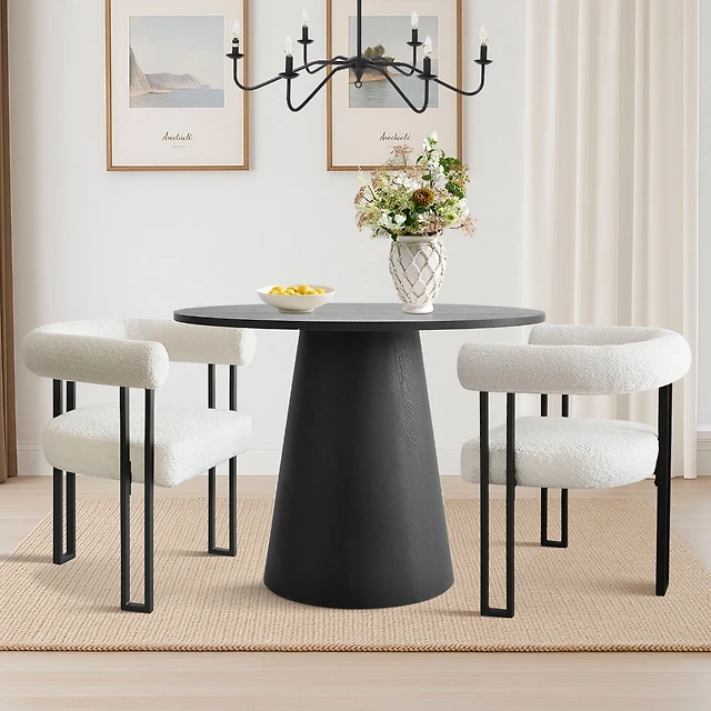 3-Piece 35 Inch Round Dining Table Set with 2 Velvet Chairs, Space-Saving Kitchen & Room Furniture for Small Spaces-Maison Boucle