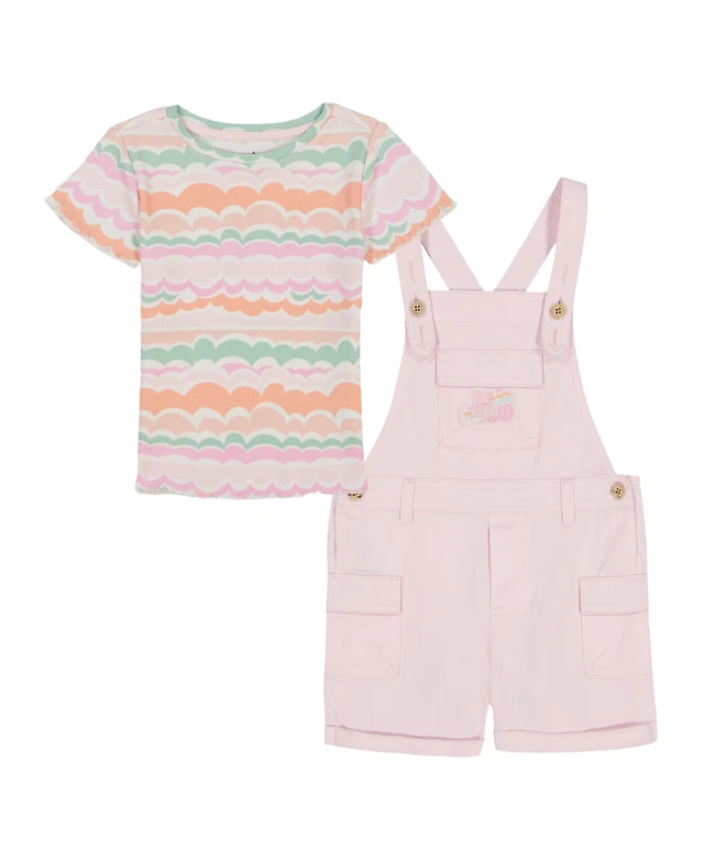 Kids Headquarters Toddler and Little Girls 2-Piece Printed Rib T-Shirt Twill Shortall Set