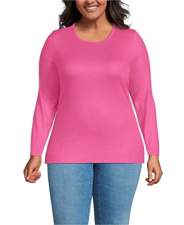 Lands' End Women's Plus Long Sleeve Micro Rib T-Shirt