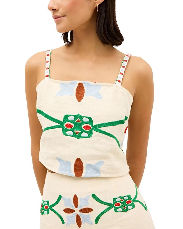 Cotton Linen Lace Trim Sleeveless Top - Exclusive