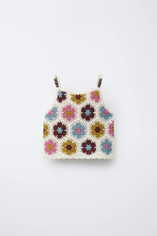FLORAL HALTER NECK CROCHET KNIT TOP