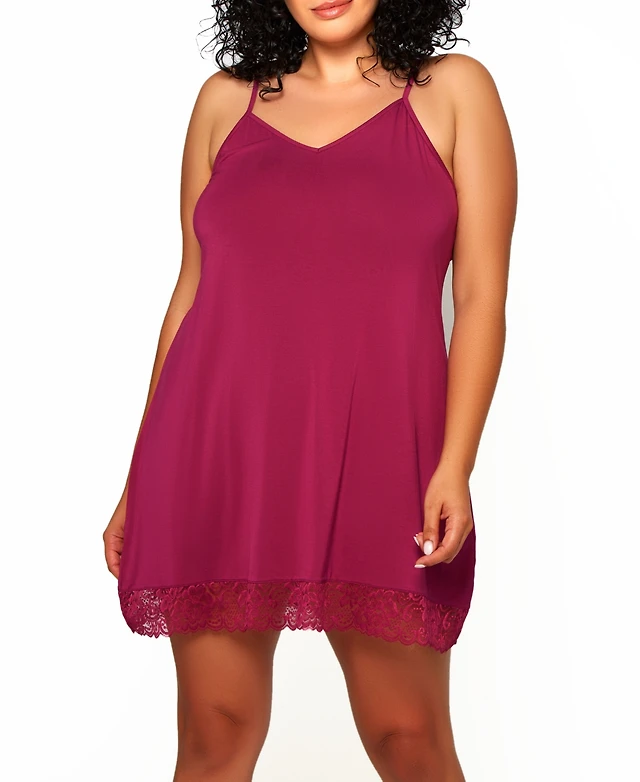 Plus Josie Modal Chemise Trimmed Elegant Tonal Lace Lingerie - Raspberry