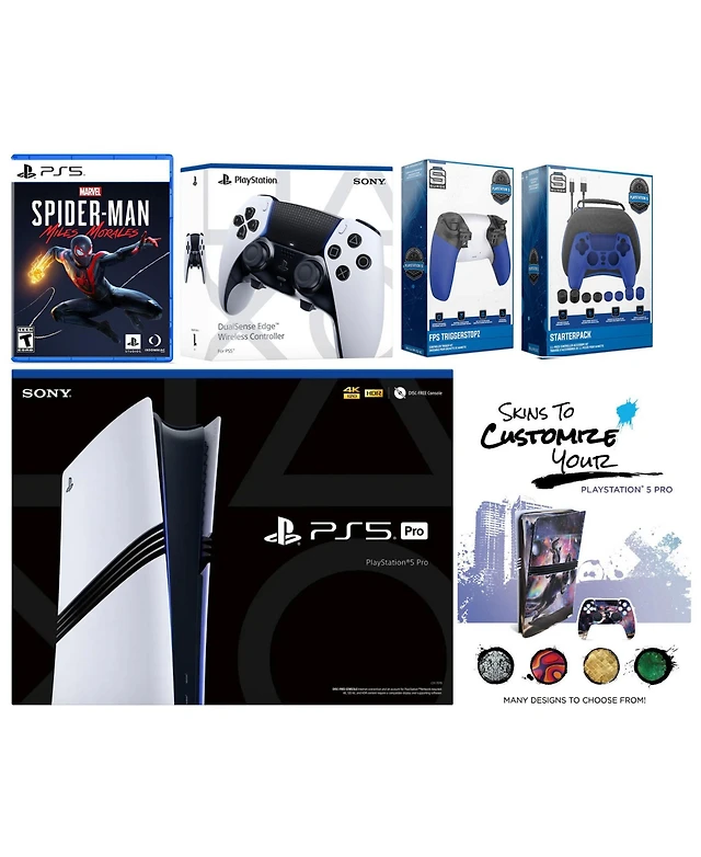 Sony Playstation 5 Pro Bundle with Spider-Man: Miles Morales, Extra Edge Controller, Trigger Stop Kit