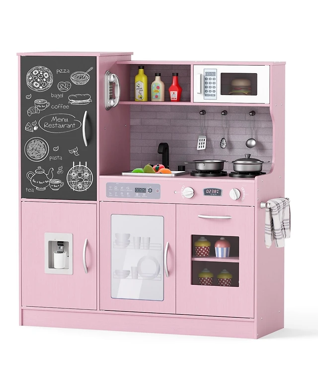 Kids Kitchen Playset with Adjustable Led Lights & Washing Machine Interactive Pretend Cooking Toy