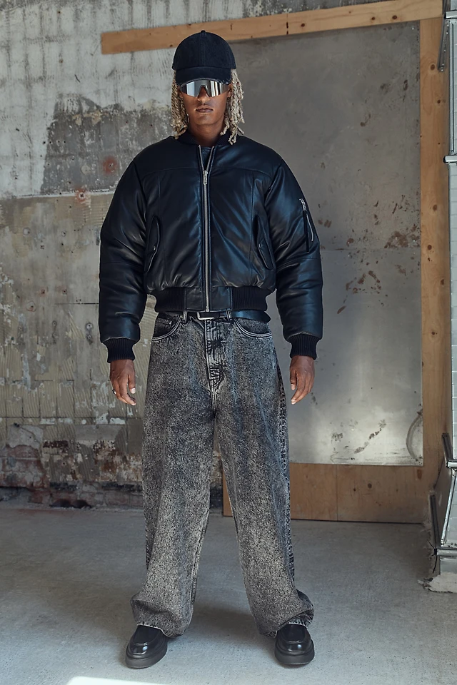Leather Trompe-l'oeil Denim Jeans Vintage Black