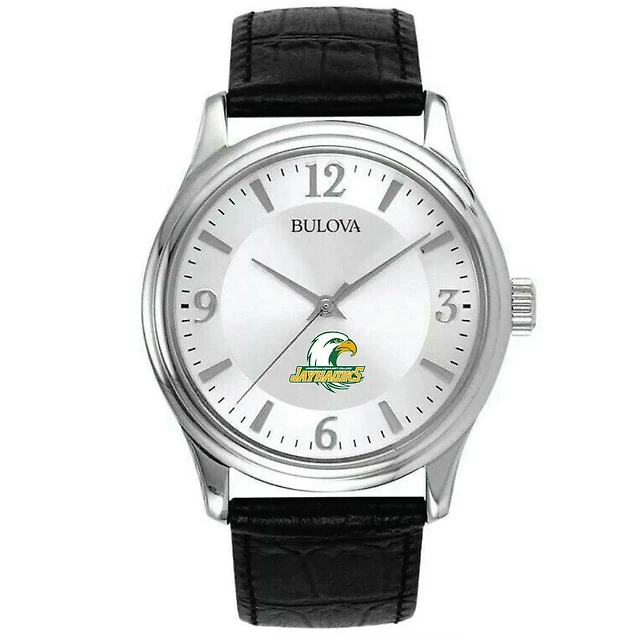 Men's SUNY Jamestown Community College Bulova Silver-Tone Stainless Steel Watch with Leather Strap