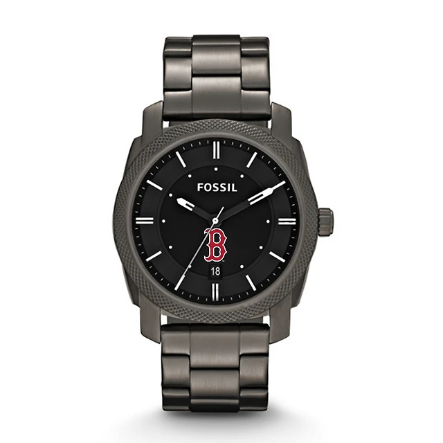Men's Fossil Gray Boston Red Sox Machine Smoke Stainless Steel Watch