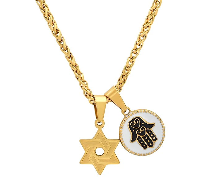 Steeltime Men's 18K Gold Plated Star of David & Hamsa Round Pendant Necklace, 24"