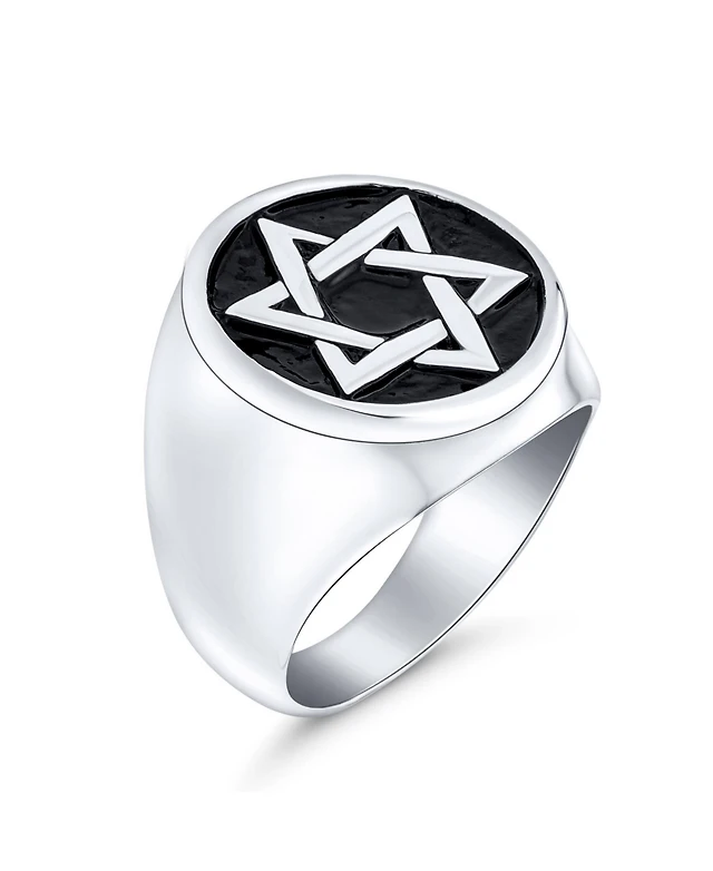 Bling Jewelry Stainless Steel Magen Judaic Star of David Signet Ring and Pendant Set