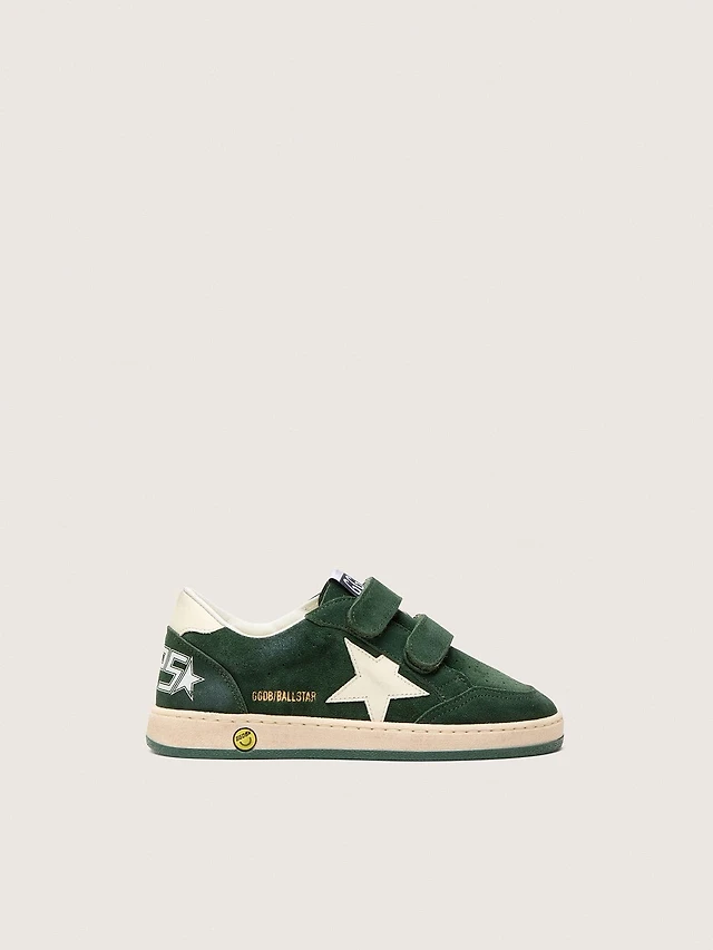 Young Ball star forest-green suede with cream leather and heel tab