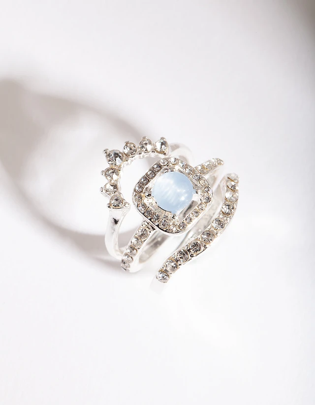 Pandora Blue Rectangular Three Stone Sparkling Ring