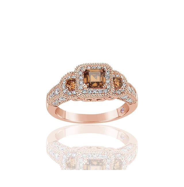 Suzy Levian Sterling Silver Cubic Zirconia Braided Halo Brown Bridal Center Stone Ring