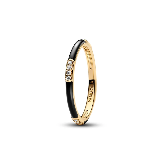 Pandora Treated Freshwater Cultured Pearl Shaped Double Band with Clear Cubic Zirconia Stone Ring 14k Gold-plated