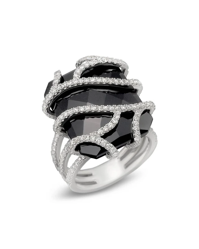 Diamond and Black Onyx Ring in 14K White Gold, 1.20 tcw - Exclusive