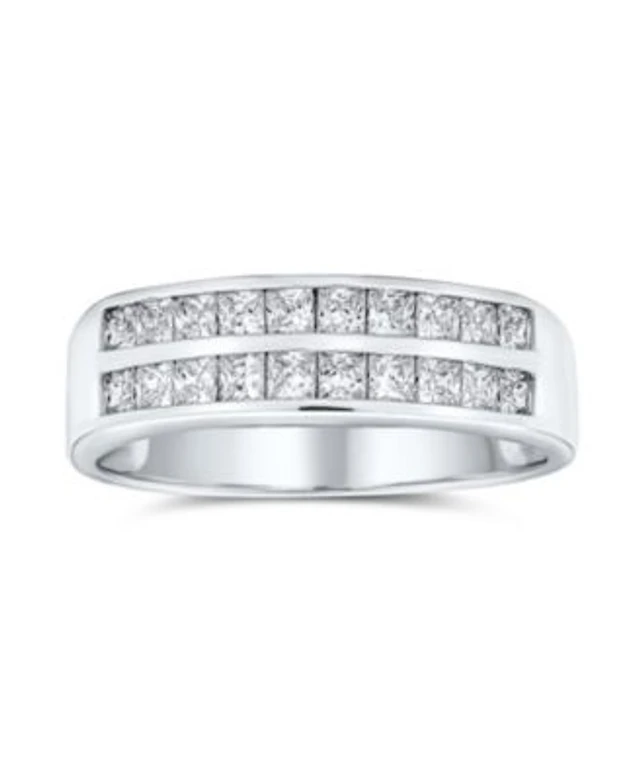Bling Jewelry Two Row Cubic Zirconia Channel Set Princess Cut Aaa Cz Anniversary Wedding Band Ring For Women925 Sterling Silver