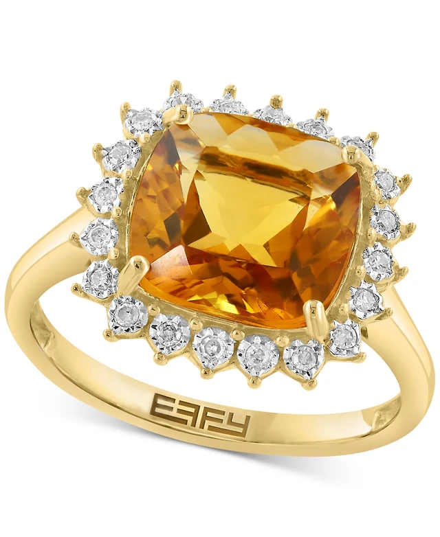 Effy Collection Diamond (1/10 ct. t.w.) & Citrine (3-5/8 ct. t.w.) Ring in 14K Yellow Gold