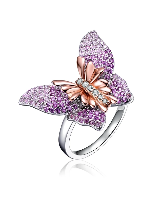 Ra 18K Rose Gold Plated Multi Color Cubic Zirconia Butterfly Ring