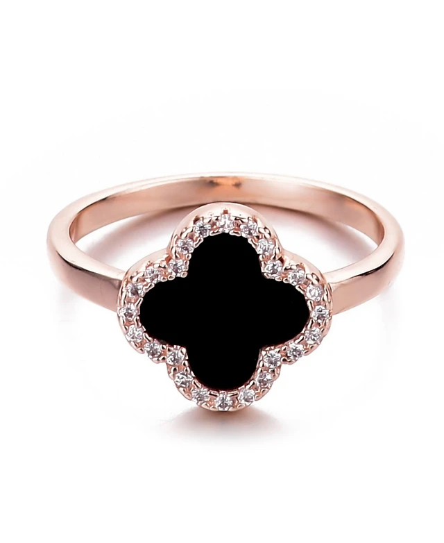 Ra 18K Rose Gold and Black Plated Multi Colored Cubic Zirconia Modern Butterfly Ring