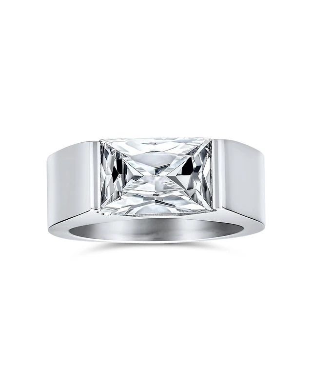 Bling Jewelry Classic Cubic Zirconia 3CT Square Cz Princess Cut Solitaire Promise Ring Sterling Silver Milgrain Pave Band